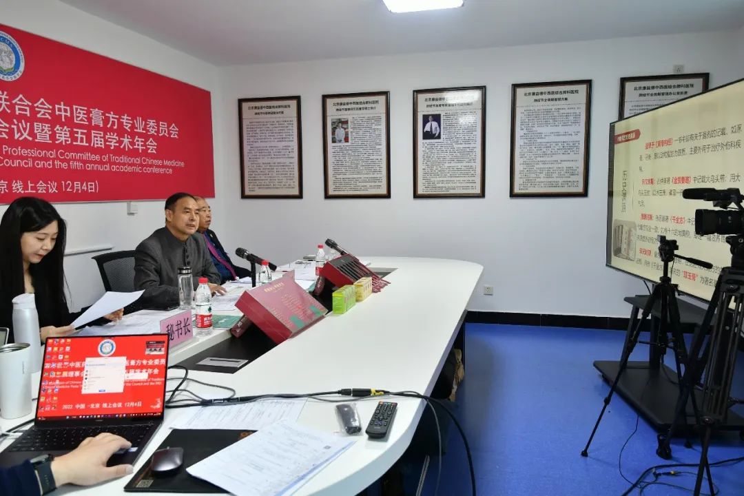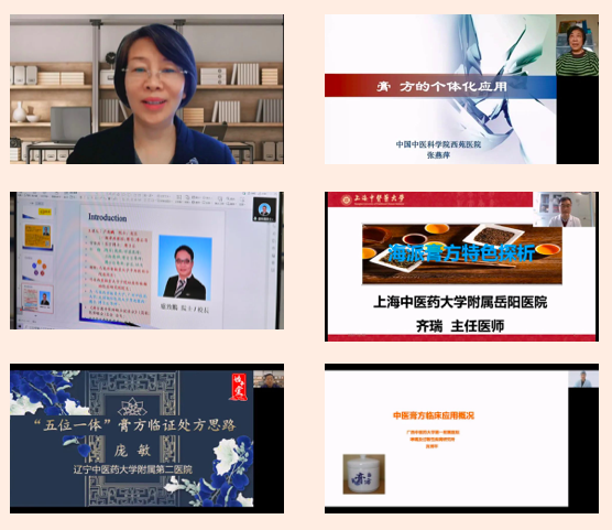開幕式結束后,大會開展了線上學術報告和學術交流活動。董瑞會長做了《中醫(yī)膏方概論》的學術報告;北京中醫(yī)藥大學蘇慧萍教授、中國中醫(yī)科學院西苑醫(yī)院張燕萍教授、港澳臺中醫(yī)醫(yī)師聯合促進會總會會長盧致鵬教授、上海中醫(yī)藥大學岳陽中西醫(yī)結合醫(yī)院齊瑞教授、遼寧中醫(yī)藥大學附屬第二醫(yī)院龐敏教授、廣西中醫(yī)藥大學第一附屬醫(yī)院賓博平教授六位中醫(yī)膏方專業(yè)委員會副會長分別作了《膏方防治慢阻肺的組方用藥特點》《膏方的個體化應用》《脾胃系統(慢性胃炎疾?。┑闹形麽t(yī)論述臨床觀察與證型研究》《海派膏方的特點》《膏方臨床應用思路》《中醫(yī)膏方臨床概論》的學術報告,并與在線專家學者進行了互動交流。中醫(yī)膏方專業(yè)委員會第二屆理事會換屆會議暨第五屆學術年會取得了圓滿成功。