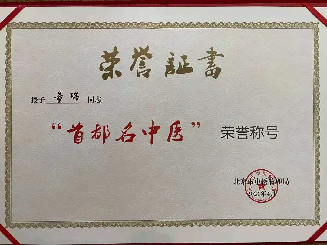 傳承、守正、創(chuàng)新、大醫(yī)精誠(chéng),是對(duì)董瑞三十五年中醫(yī)藥生涯的真實(shí)寫照,榮獲首屆“首都名中醫(yī)”榮譽(yù)稱號(hào),是對(duì)他從醫(yī)以來一直致力于中醫(yī)文化傳承、堅(jiān)守臨床一線的肯定,也是他對(duì)“敬佑生命、救死扶傷、甘于奉獻(xiàn)、大愛無(wú)疆”的職業(yè)精神的最好詮釋。