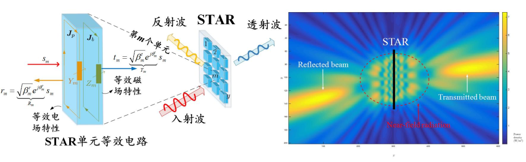 就 STARS 的控制而言,STARS 需要同時考慮每個單元折射和反射信號的控制,于是 STARS 的控制相比傳統(tǒng) RIS 更加復(fù)雜。每個 STARS 陣元需要具備獨立可調(diào)的表面電、磁阻抗,這樣,每個單元中的面電流強(qiáng)度(對應(yīng)電阻抗)和渦旋電流強(qiáng)度(對應(yīng)磁阻抗)才可以被改變,從而人為的控制其產(chǎn)生的反射和透射信號的幅值與相位,對無線信號的傳播環(huán)境進(jìn)行“人工配置”。