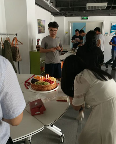 接下來“傳統(tǒng)生日會”照例為5月份過生日的同事點燃蠟燭(本月為七位天坦伙伴),唱起祝福的生日歌,分享香甜可口的蛋糕,頒發(fā)“功夫熊貓”紀(jì)念品,集齊24式功夫熊貓可能得到天坦超級大獎,這也是“壽星”最大的幸運,同時也是為了激勵天坦人勇往拼搏、直線進取設(shè)置的最大獎項。