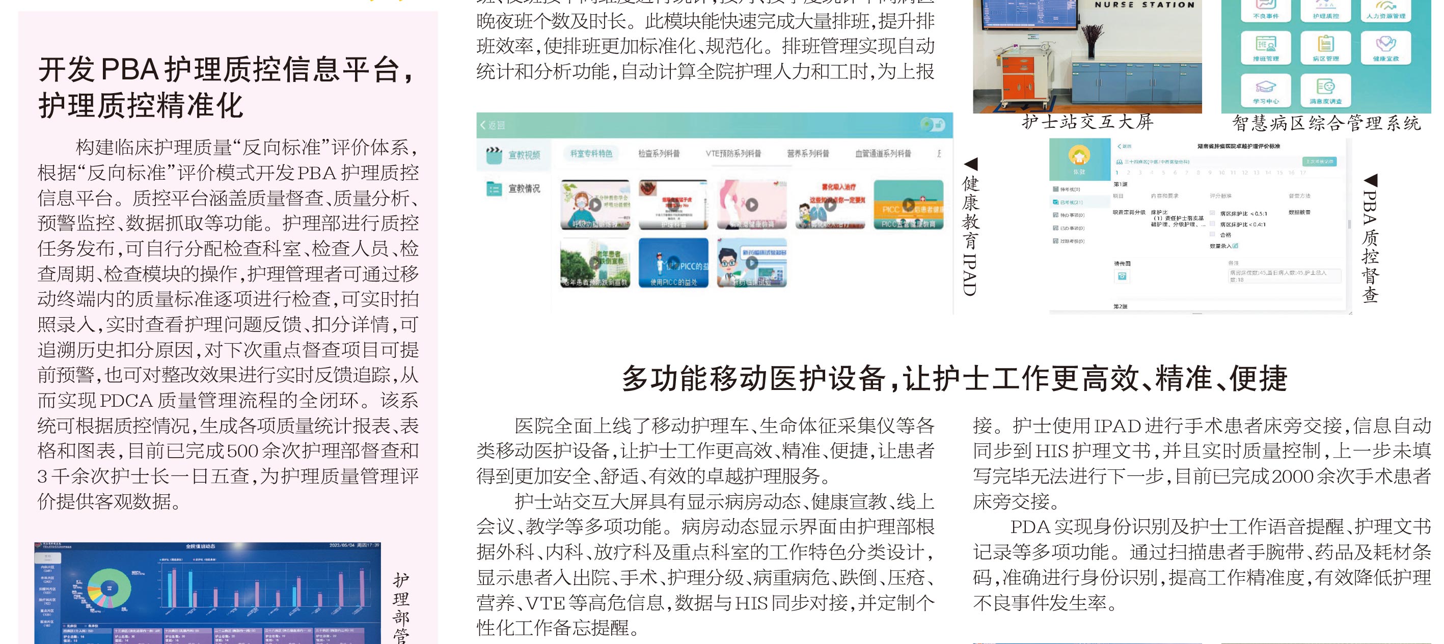 北京天坦智能全面建設(shè)湖南省腫瘤醫(yī)院智慧護(hù)理,從醫(yī)院頂層設(shè)計(jì)制定“智慧病房”建設(shè)項(xiàng)目,深耕細(xì)作開(kāi)發(fā)出集護(hù)理管理和臨床服務(wù)為一體的智慧病區(qū)綜合管理平臺(tái),為臨床提供便捷、精準(zhǔn)、高效的信息系統(tǒng)支撐,實(shí)現(xiàn)護(hù)理質(zhì)控精準(zhǔn)化、護(hù)理管理數(shù)據(jù)化,促進(jìn)醫(yī)院護(hù)理高質(zhì)量發(fā)展。