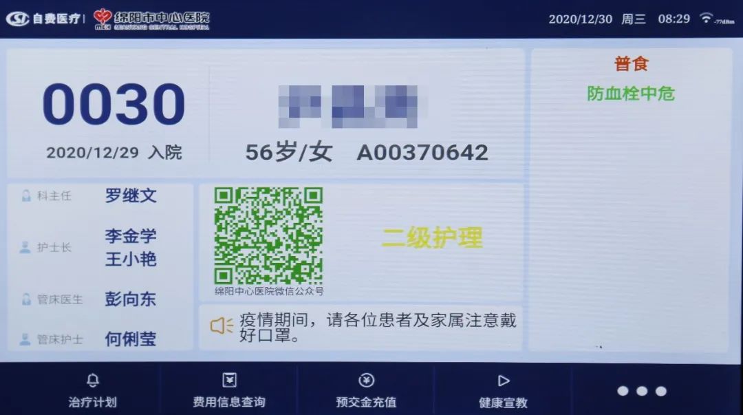 床旁的這塊屏幕作為一套連接護士站、走廊和病房的系統(tǒng),實現(xiàn)跨空間的信息互通。不僅有效提升了醫(yī)、護、患三者溝通時效,還為患者提供了更多便捷和人性化的服務?;颊咻斎朊艽a可以隨時隨地查詢費用明細,并且還可以床旁掃碼繳費,減少了患者往返排隊時間。